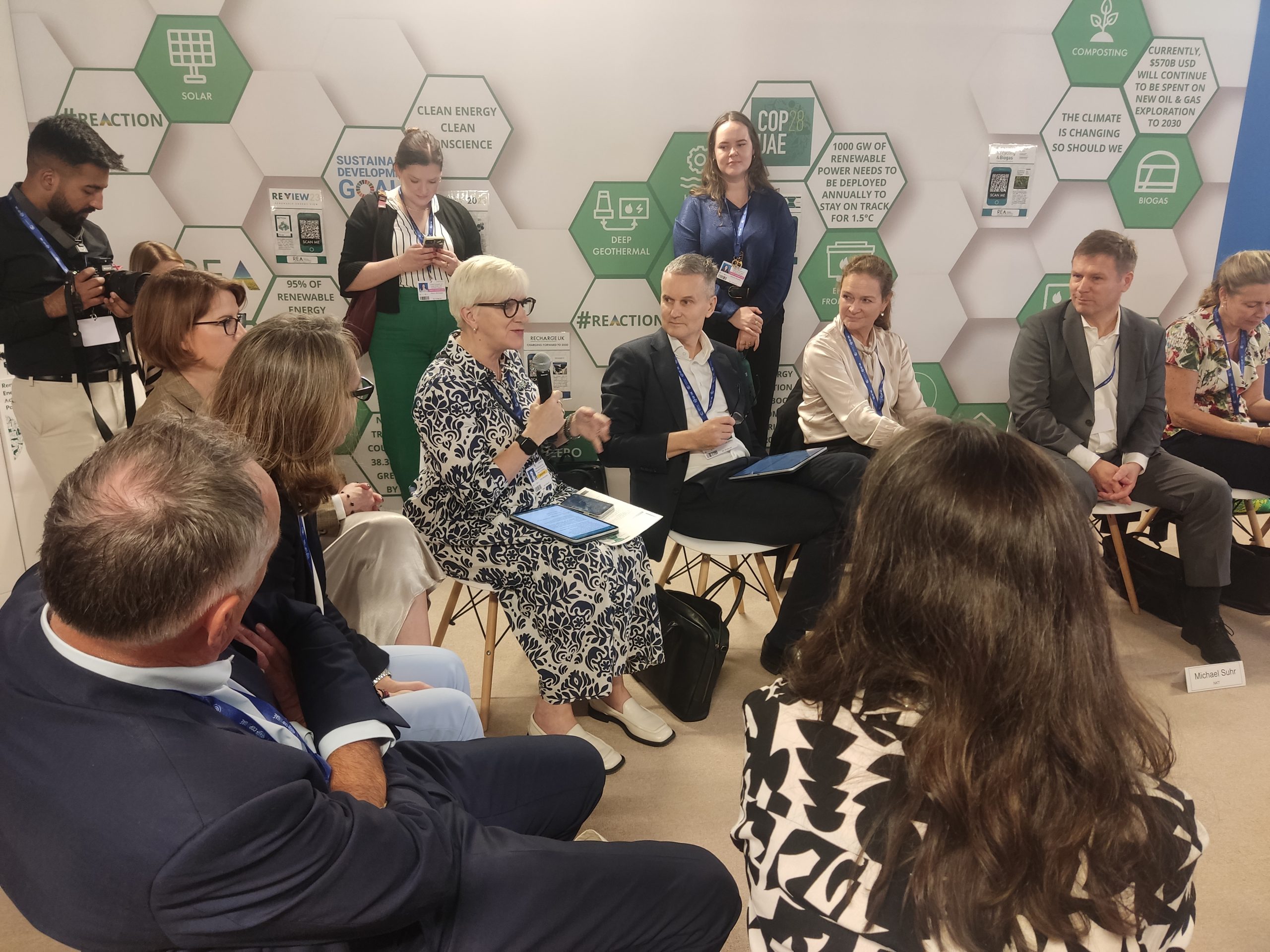 At COP 28, the REA increased our engagement to new heights by hosting a pavilion in the renowned Blue Zone of the conference, with our partners: Drax and KPMG. The Renewable Energy Action (REAction) Pavilion focused on championing renewable energy technologies and solutions that can be deployed today to mitigate climate change and deliver a just and speedy transition to a 100% renewable energy economy.